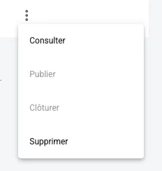 Pour supprimer définitivement une annonce clôturée, clique sur à droite de l’annonce dans la liste des annonces clôturées et choisi l’option « Supprimer ».