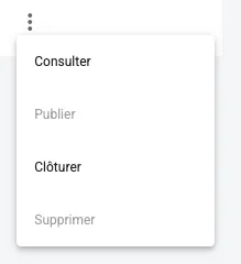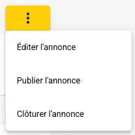 Sur l’écran de consultation, en cliquant sur et en choisissant l’option « Clôturer l’annonce » OU en cliquant sur dans la liste d’annonces, tu trouveras l’option « Clôturer ».