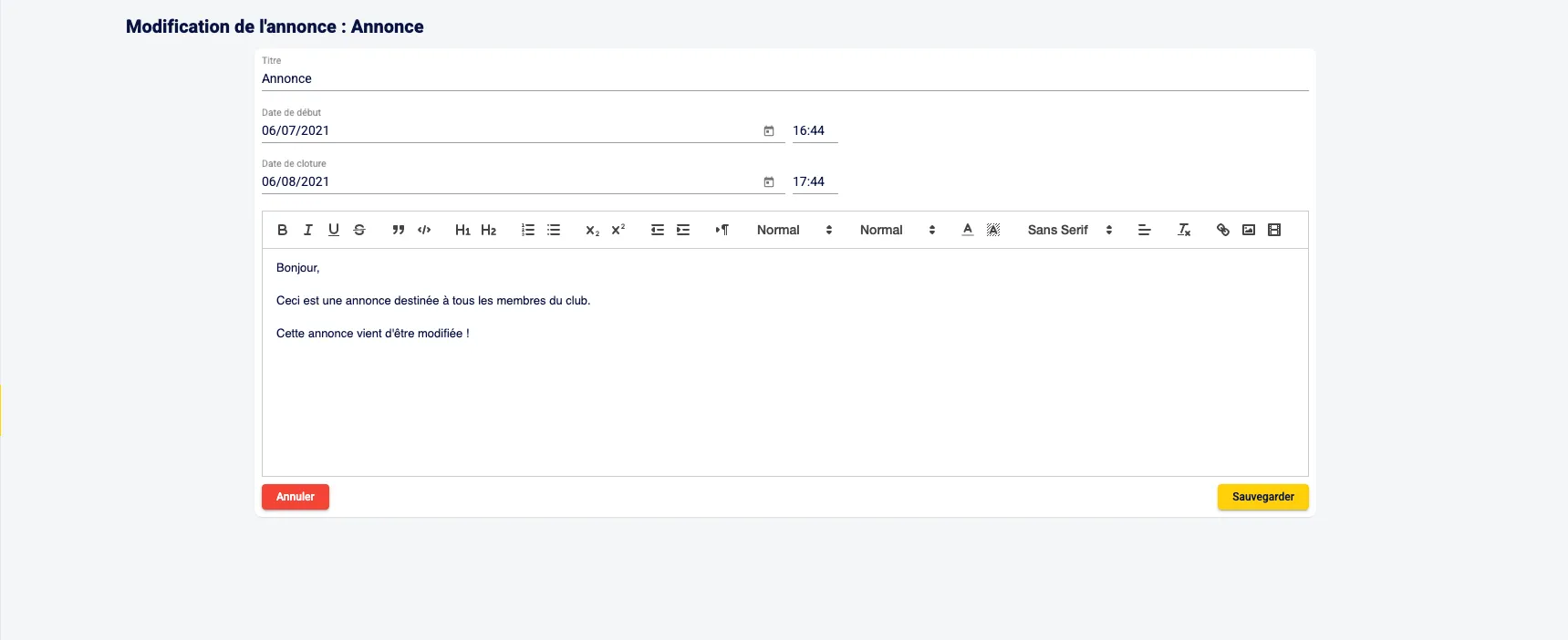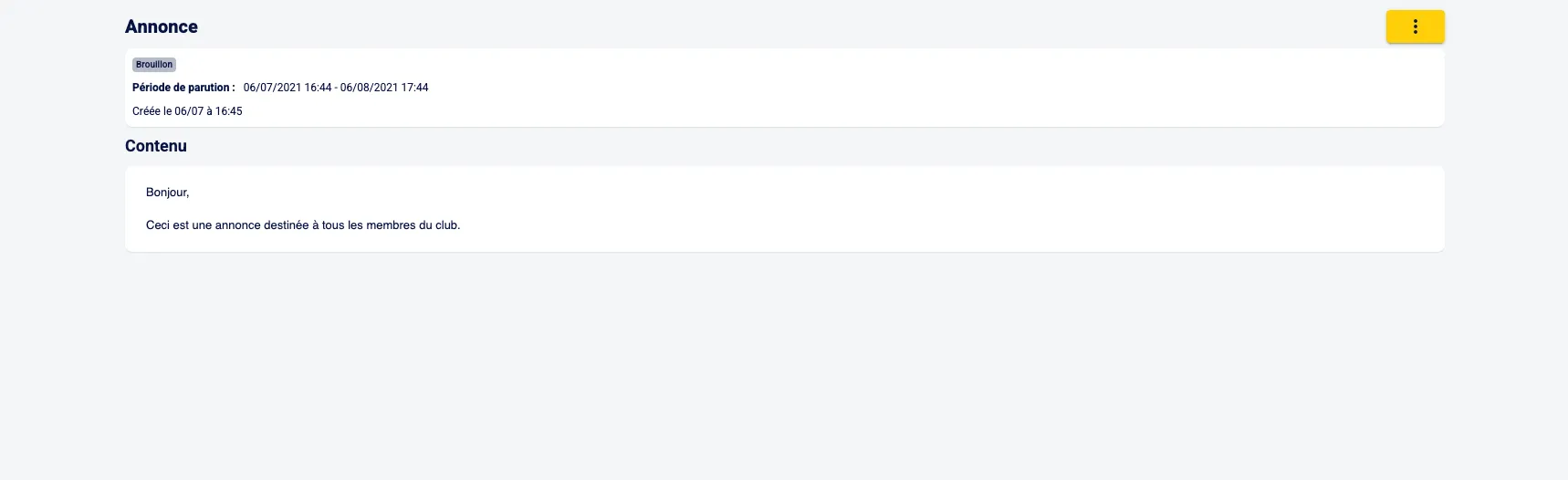 À tout moment, tu peux publier une annonce qui est en état de brouillon si tu es sûr.e de ce que tu as écrit et que tu es prêt.e à la montrer au club.