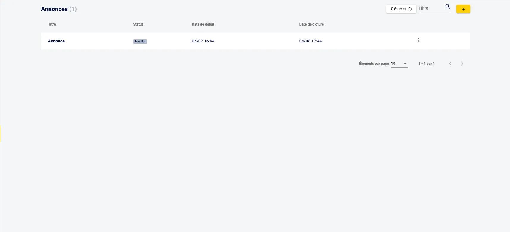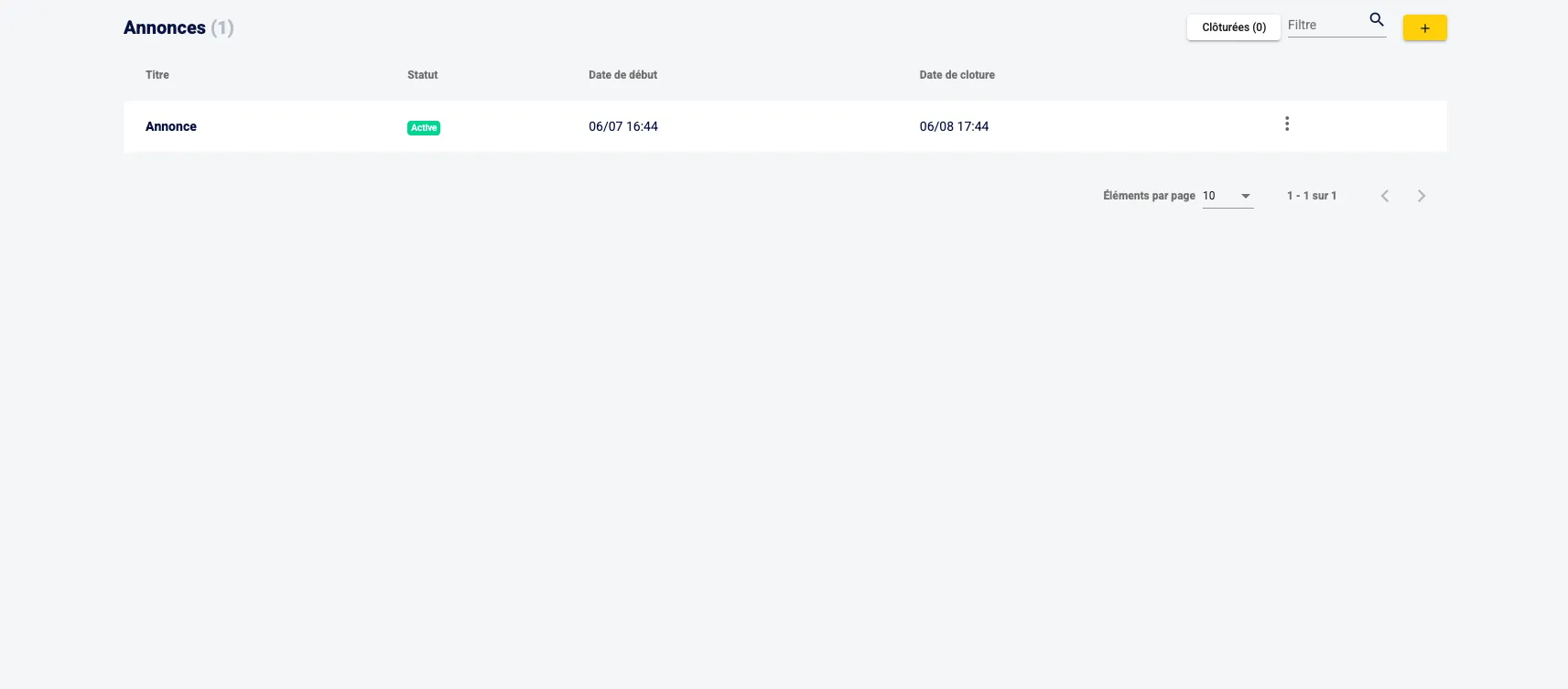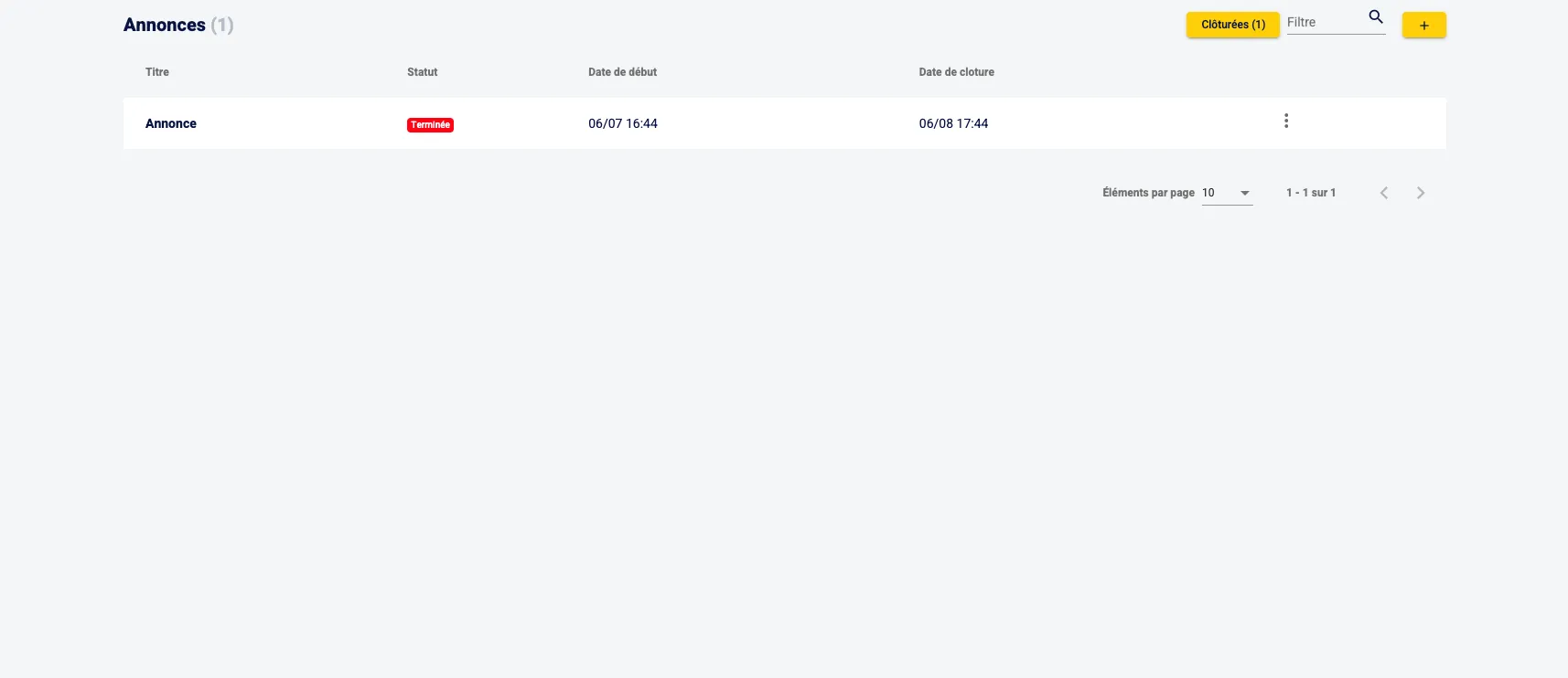Pour consulter la liste des annonces clôturées, tu dois cliquer sur le bouton « Clôturées (X) » en haut à droite de l’onglet.