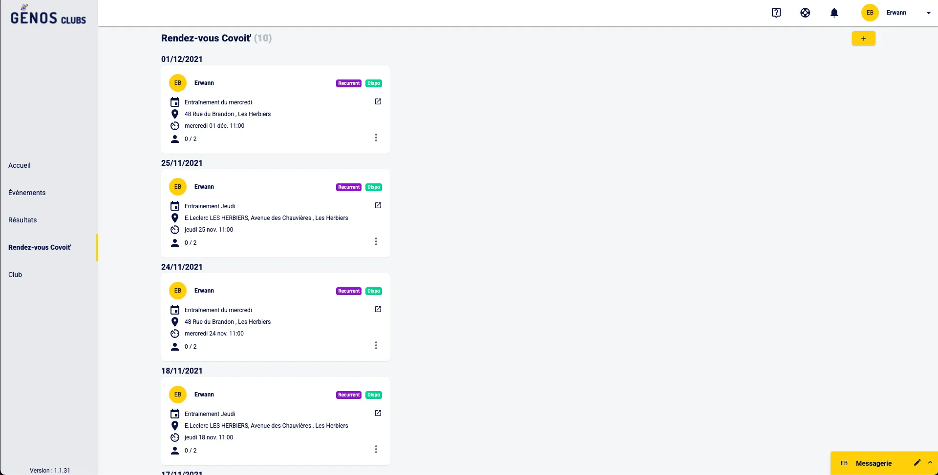 Sur la page de rendez-vous covoit’, tu verras tous les covoiturages proposés dans ton club qu’ils soient à toi ou non.
