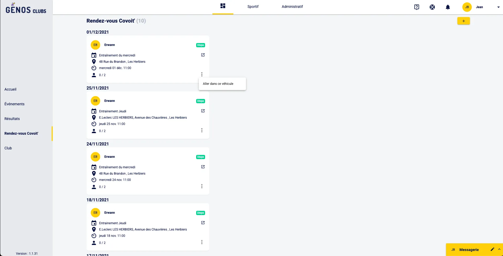 Propose ou Rejoins facilement un Covoiturage pour te Rendre aux Entraînements ou Compétitions avec le "Rendez-vous Covoit' sur Génos Clubs.