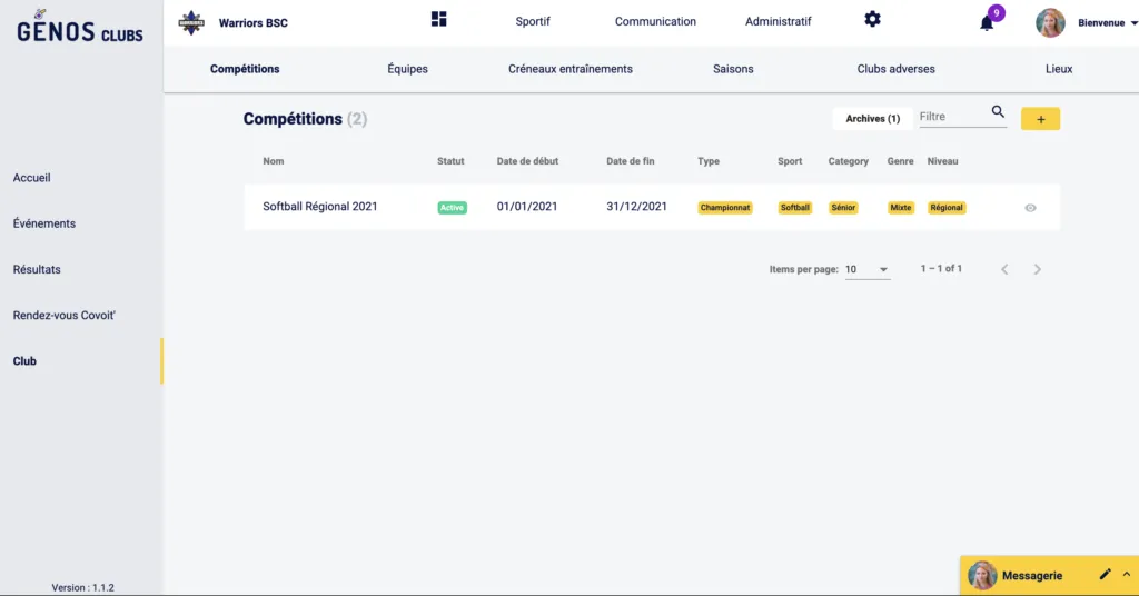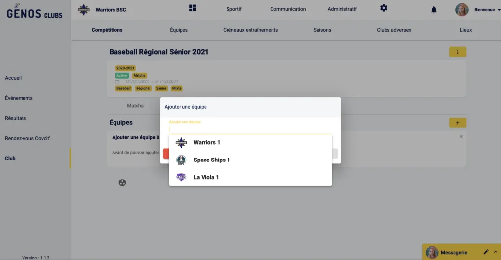 Une équipe d’entente est gérée comme toute autre équipe qu’elle soit adverse ou interne au club. Pour l’ajouter dans une compétition, dirige-toi dans Club > Sportif > Compétitions.