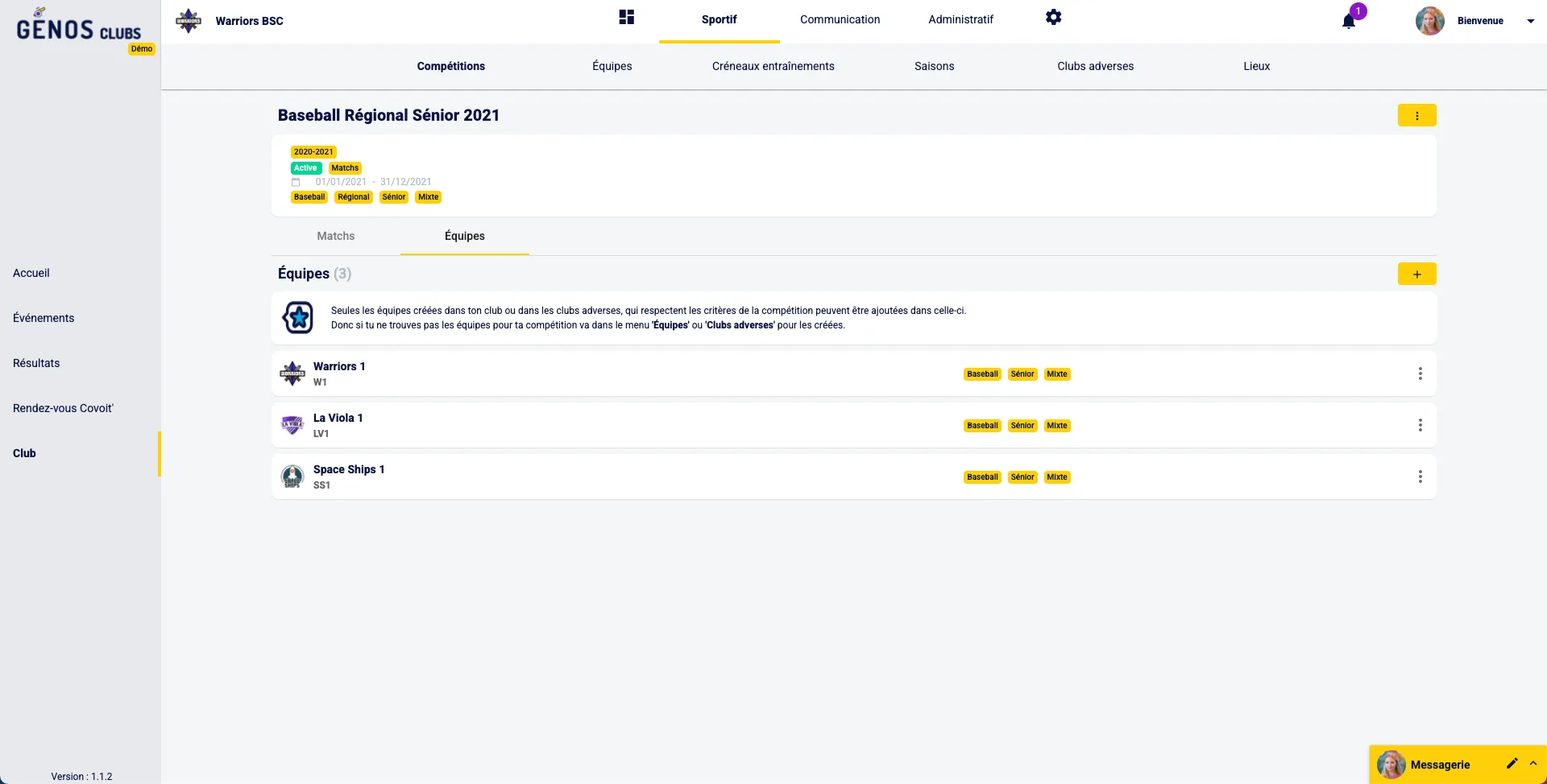 Pour ce faire va dans Club > Sportif > Équipes.