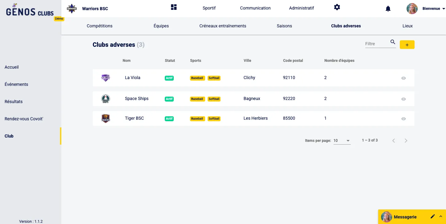 Un club adverse permet d’avoir une représentation imagée dans l’application des clubs contre lesquels ton équipe/club va ou a l’habitude d’organiser des rencontres notamment lors de compétitions, matchs amicaux etc.