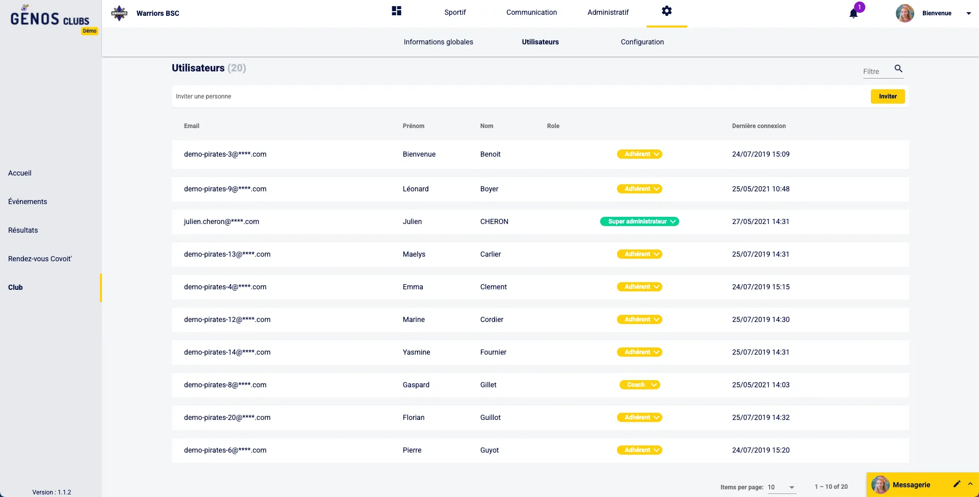 L’application se charge de contacter les personnes par email en les invitant à se créer un compte et à rejoindre ton club nouvellement créé.