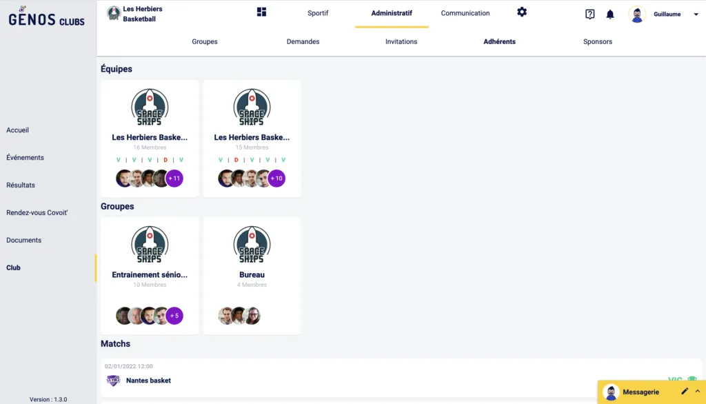 De plus, tu trouveras également les équipes, les groupes et les derniers matchs de tes adhérents.
