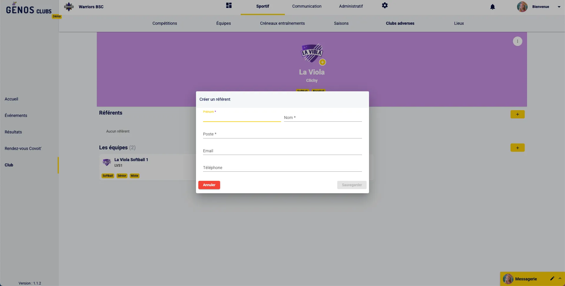 Un référent est un contact clé pour aider à la gestion des relations avec le club adverse. Il peut être le gestionnaire du club adverse, un coach etc.