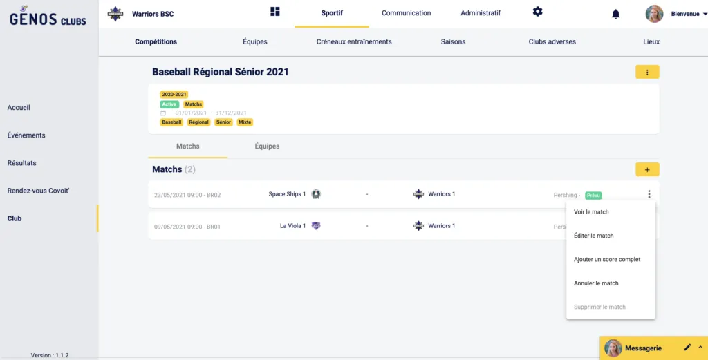Tu pourras ainsi consulter les futurs rencontres facilement depuis la page de la compétition et faire des modifications simplement sur l’un des matchs si besoin.