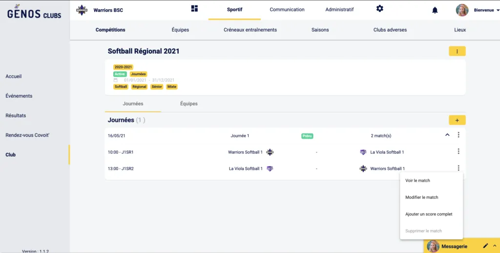 Tu pourras ainsi consulter les futurs rencontres facilement depuis la page de la compétition et faire des modifications simplement sur l’une des journées si besoin.