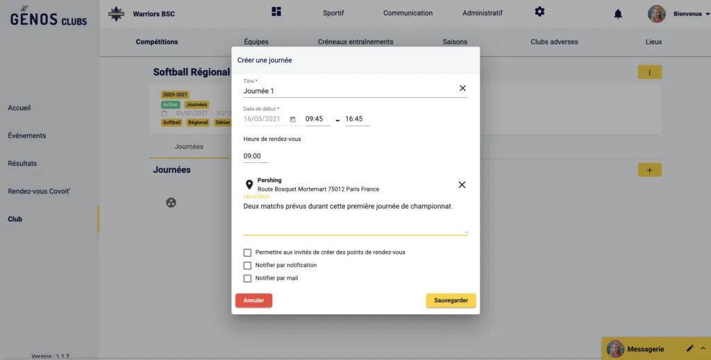 Comme pour le match, tu peux notifier les participants de ton équipe a la création de la journée.