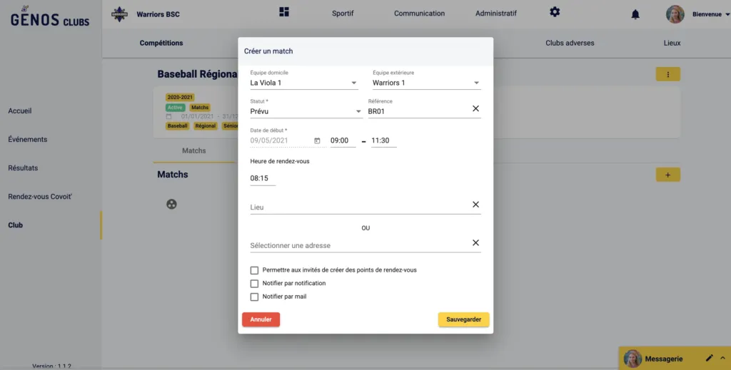 Si tu décides de ne pas encore notifier les participants ce n’est pas grave car ils verront le match apparaître dans leur calendrier et pourront indiquer leur présence par eux même. Et à tout moment tu pourras faire sonner le clairon pour celles et ceux qui auront oublié d’indiquer leur présence.