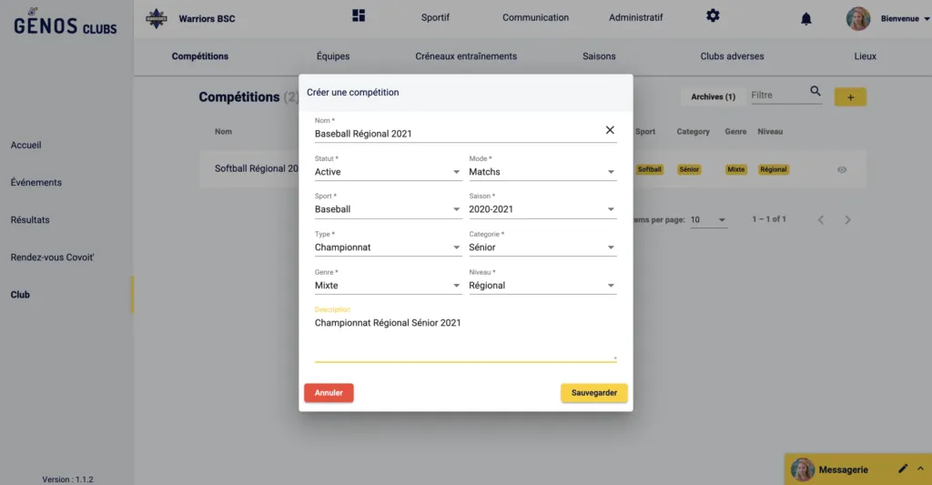 Gère les compétitions sur Génos Clubs : crée des championnats et tournois, ajoute les équipes, planifie les matchs et les journées.