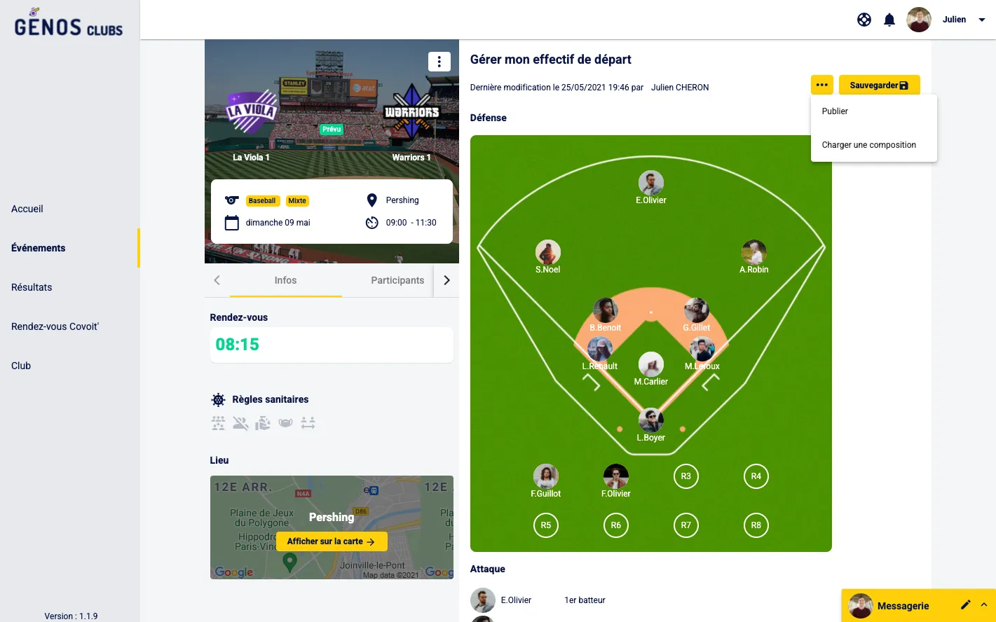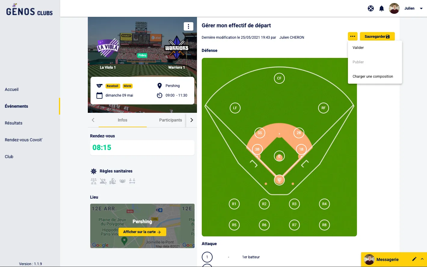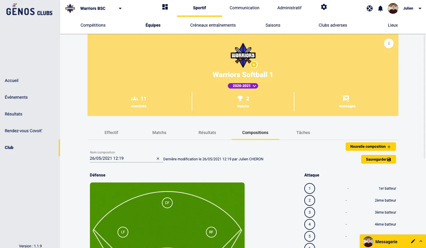 Génos Clubs permet pour les Sports Collectifs de gérer les Compositions des Matchs. Le jour du match mais aussi en amont donc sans pression.