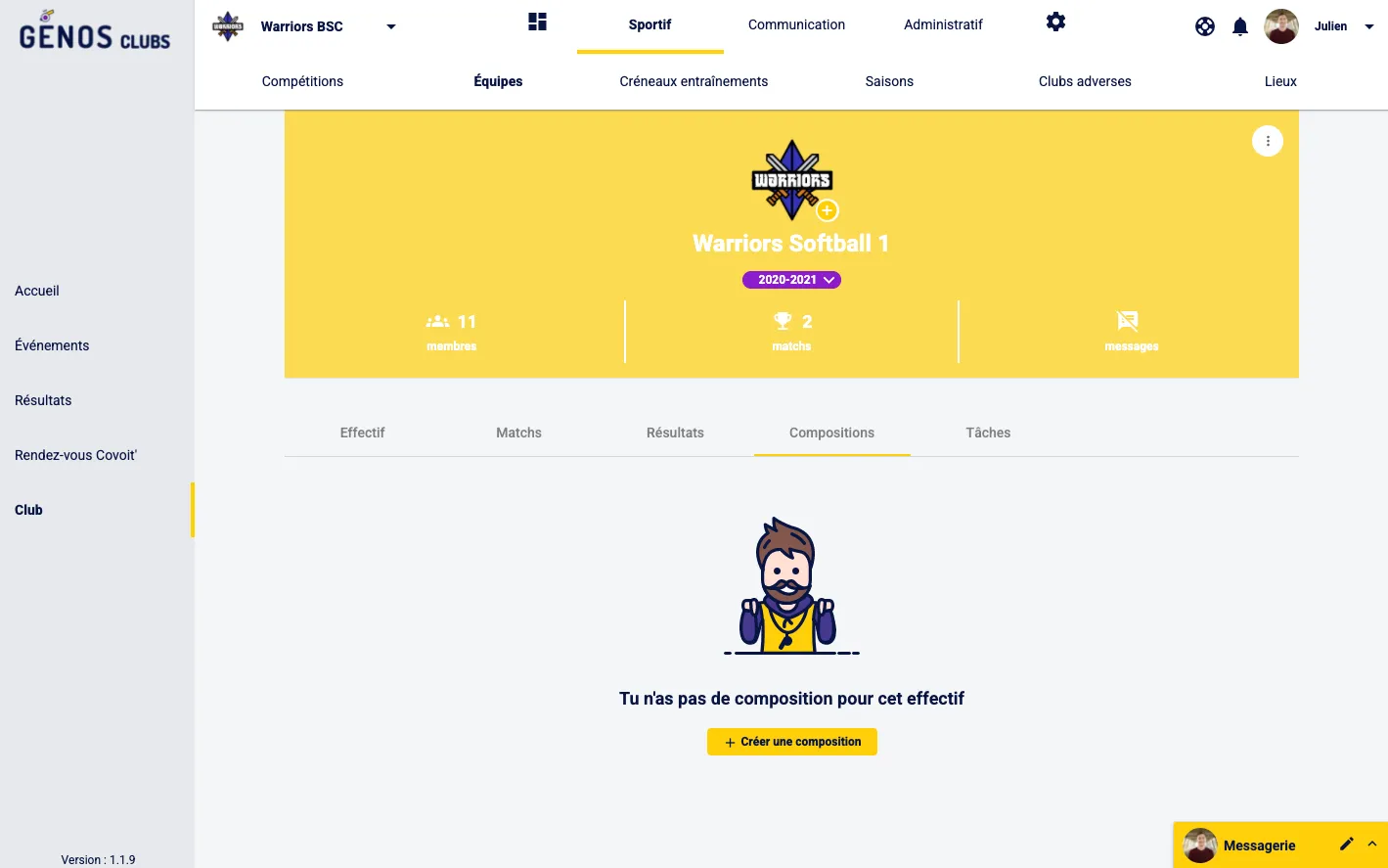Pour pouvoir créer une composition il faut se rendre sur la page d’une équipe.