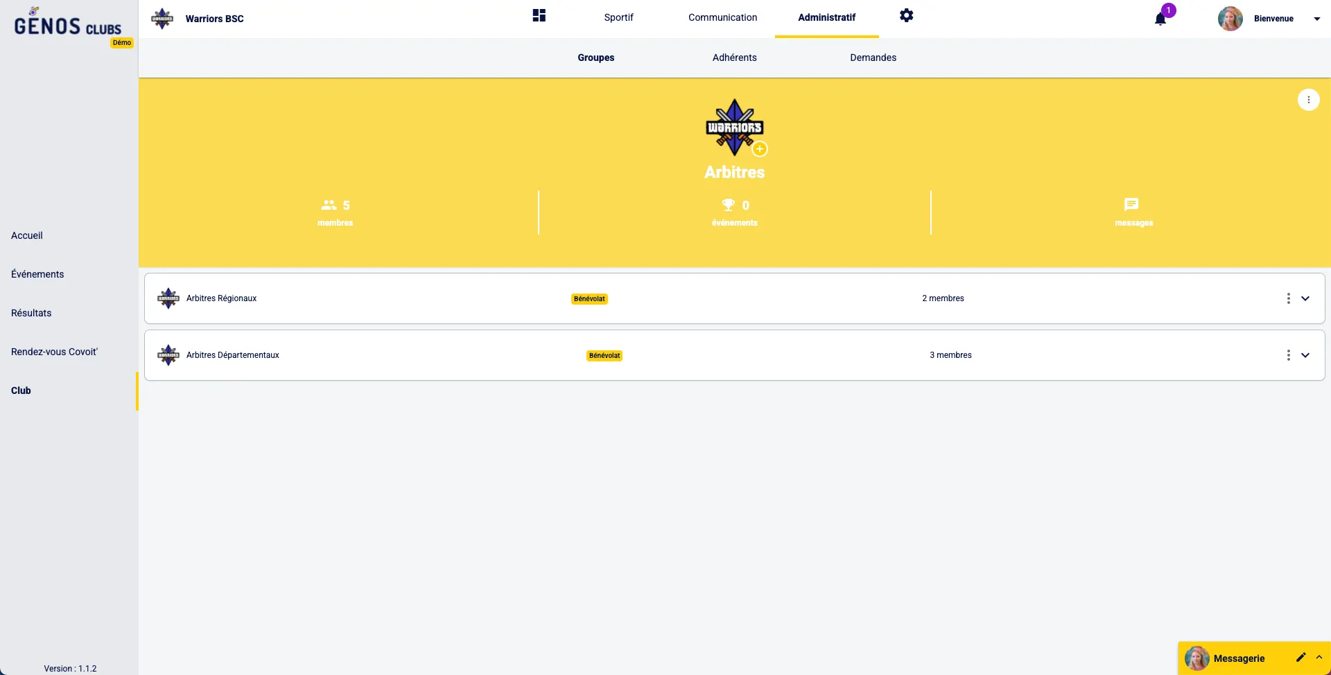 Pour créer une conversation de groupe, dirige toi sur Club > Administratif > Groupes > Sélectionne le groupe.