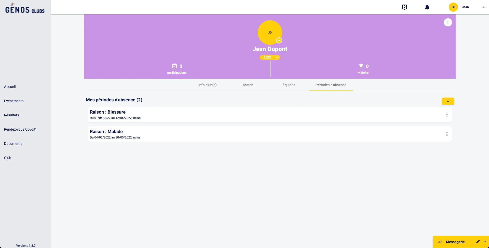 Gère les périodes d'absence des adhérents sur Génos Clubs. Facilite la planification et la gestion des congés pour une meilleure organisation.