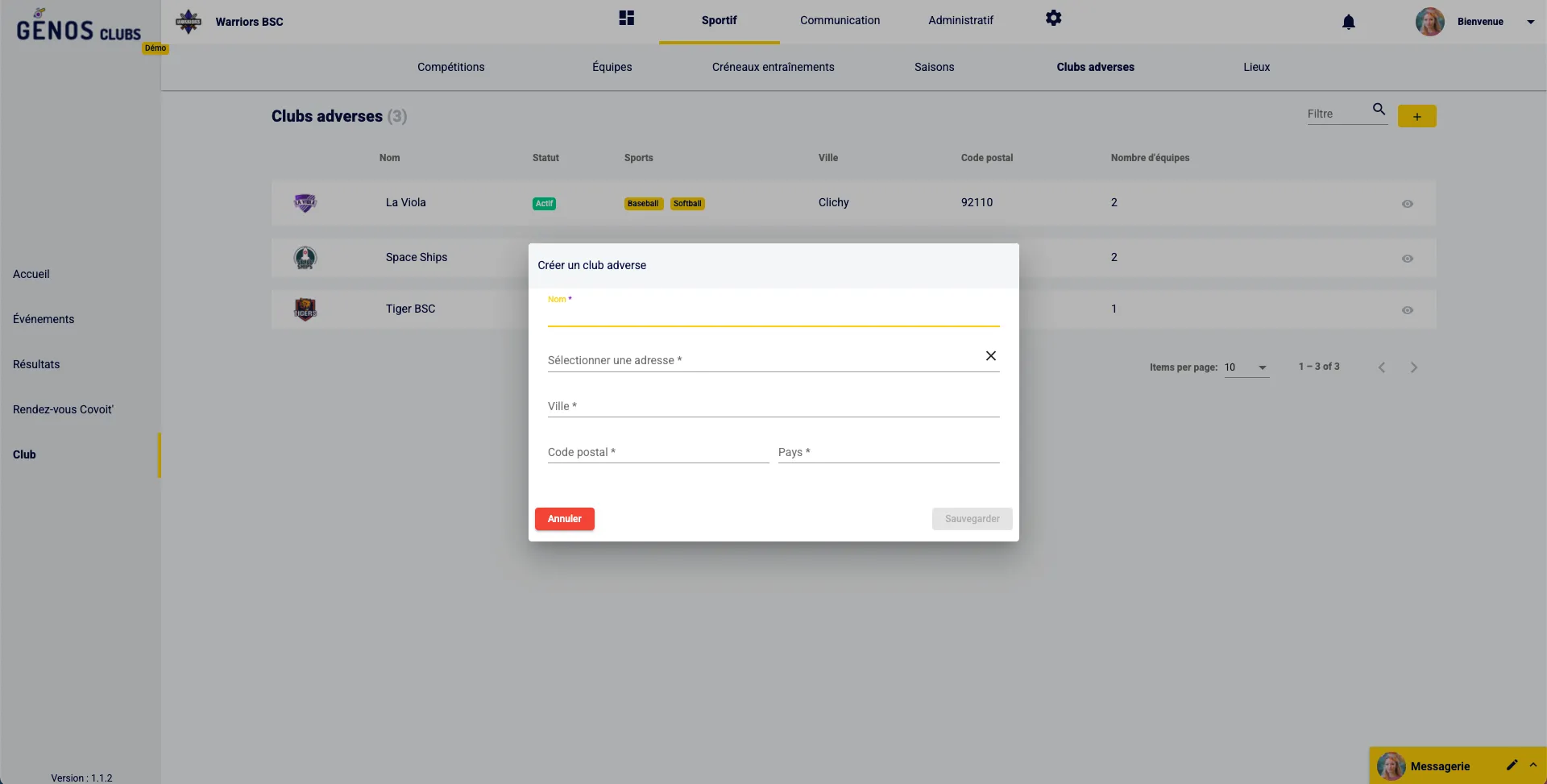 Optimise la gestion des clubs adverses sur Génos Clubs. Ajoute, modifie et supprime les clubs adverses pour des compétitions harmonieuses.
