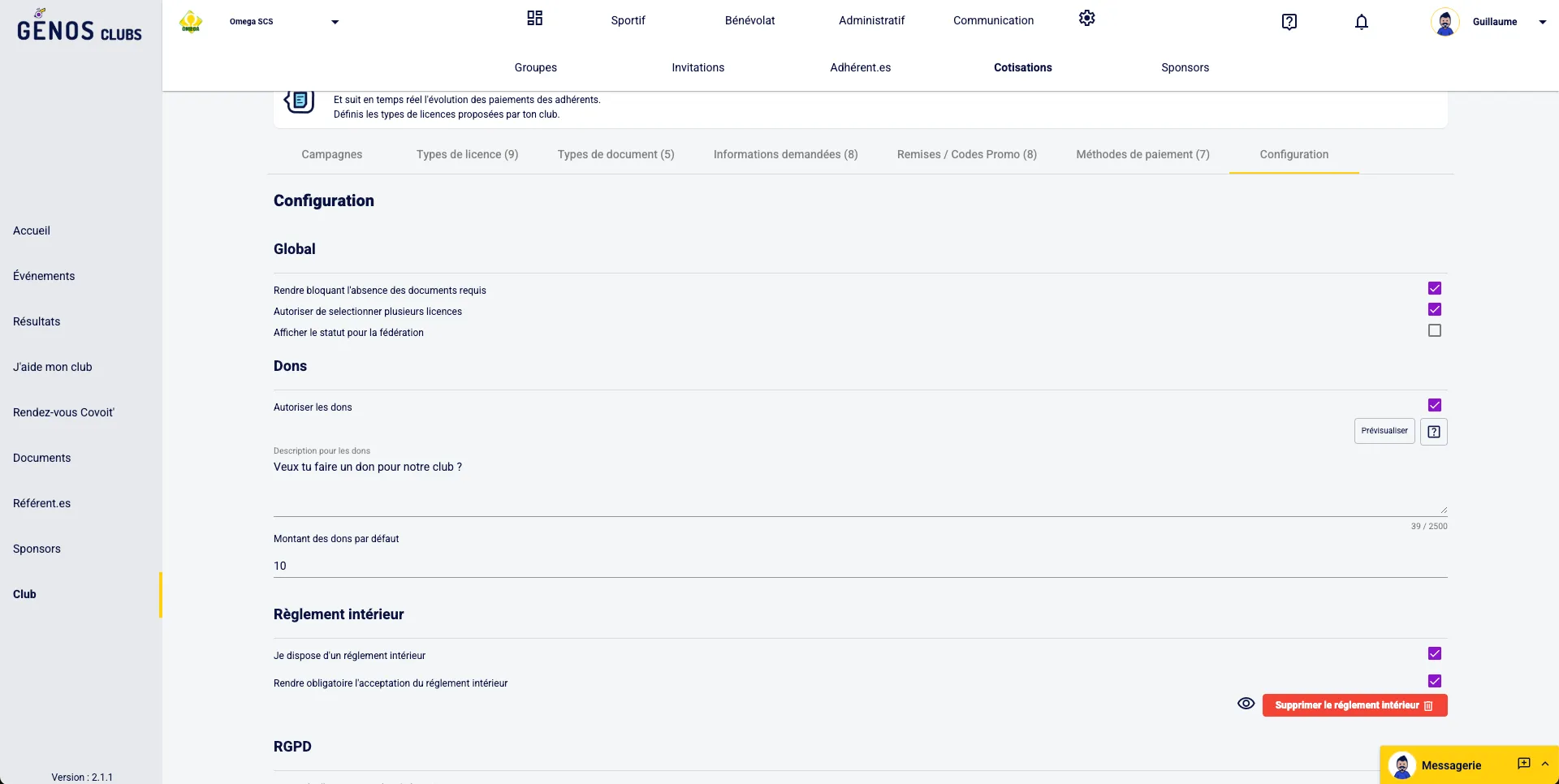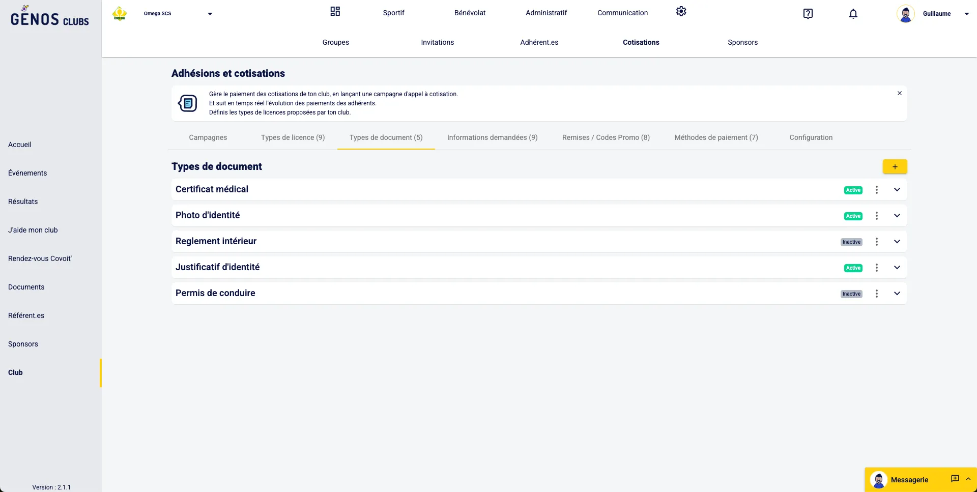 En tant que gestionnaire du club, tu as accès à la gestion des cotisations dans l’onglet « Administratif » du menu « Club » de Génos Clubs, puis «…
